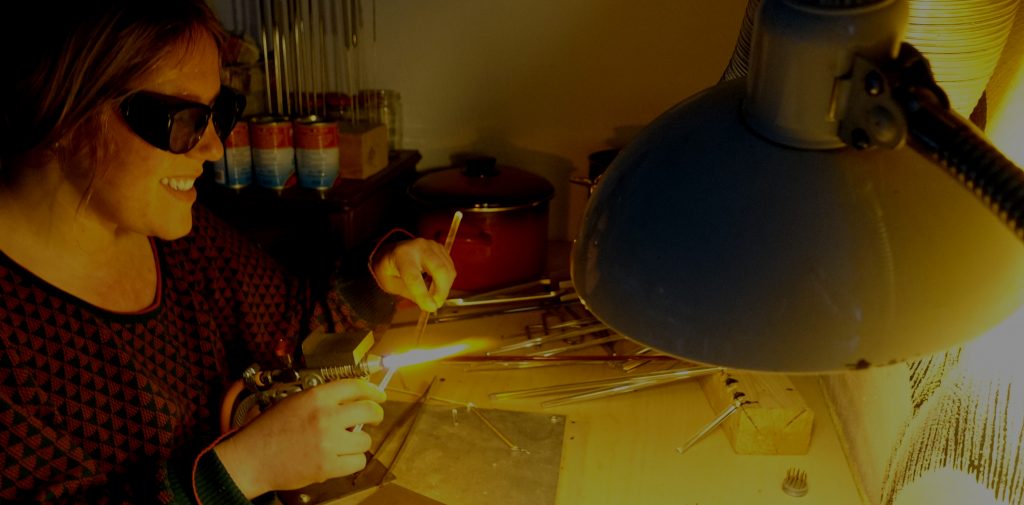 Pine ist gelernte Glasveredlerin und arbeite seit 2015 mit Glas. Von filigranen Kunstwerken über dekorativen Wandschmuck bis hin zu Lampenschirmen und Trinkgläsern aus Altglas bereichert sie die Galerie mit ihren vielseitgen Arbeiten. Auch liebefoll gefertigte Glasperlen und Anhänger mit beeinducken Mustern fertig Pine in der Werkstatt nebenan.