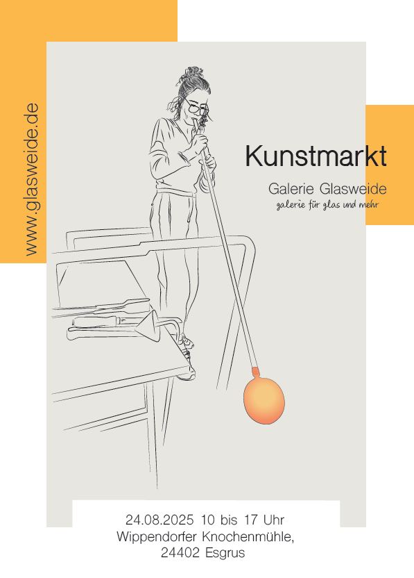 Es ist endlich soweit, wir Planen gerade den nächsten Markt an der Knochenmühle! Wir freuen uns sehr darauf am 24.08.2025 mit euch zusammen zu kommen. Es erwartet euch wundervolles Kunsthandwerk allen voran natürlich aus Glas, aber auch viele andere Materialien wie Keramik, Holz und Leder. Neben Kaffee und Kuchen wartet auf euch ein vielseitiges live Programm.
